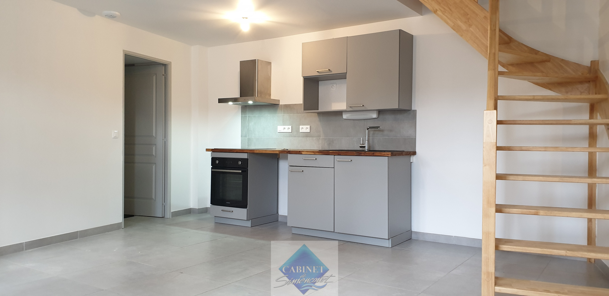 Maison T2 comprenant au RDC une pièce de vie avce cuisine ouverte, une buanderie, un WC séparé.