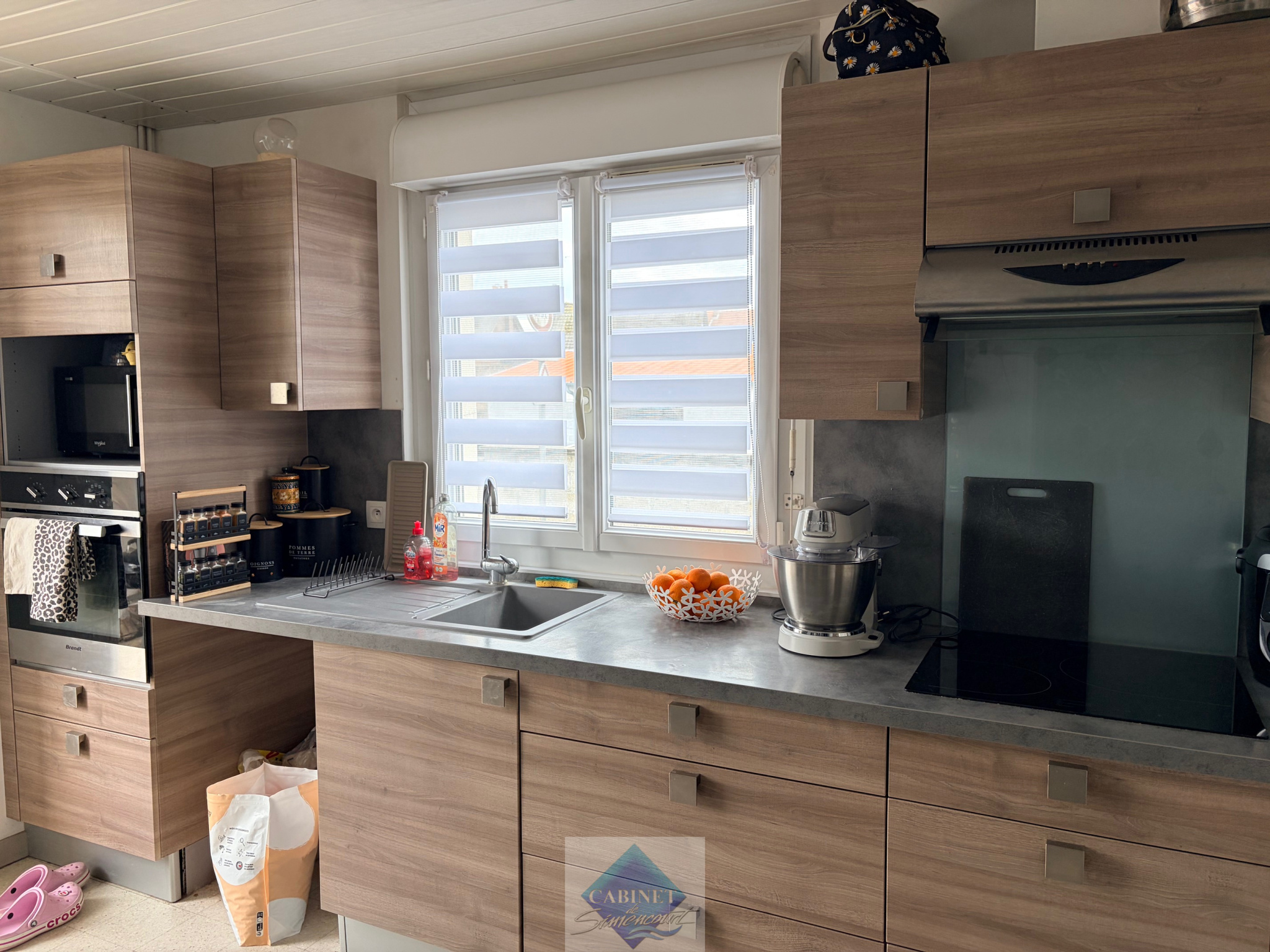 Maison avec cour et garage comprenant une cuisine équipée et aménagée, un séjour, une salle de douche, un wc, deux chambres, un grenier. Chauffage électrique. Libre au 10 mai 2026. Les frais d'agence sont de 549 €. Plus d'informations au 06.80.98.18.25 - Laëtitia DAGICOUR - Cabinet de Simencourt