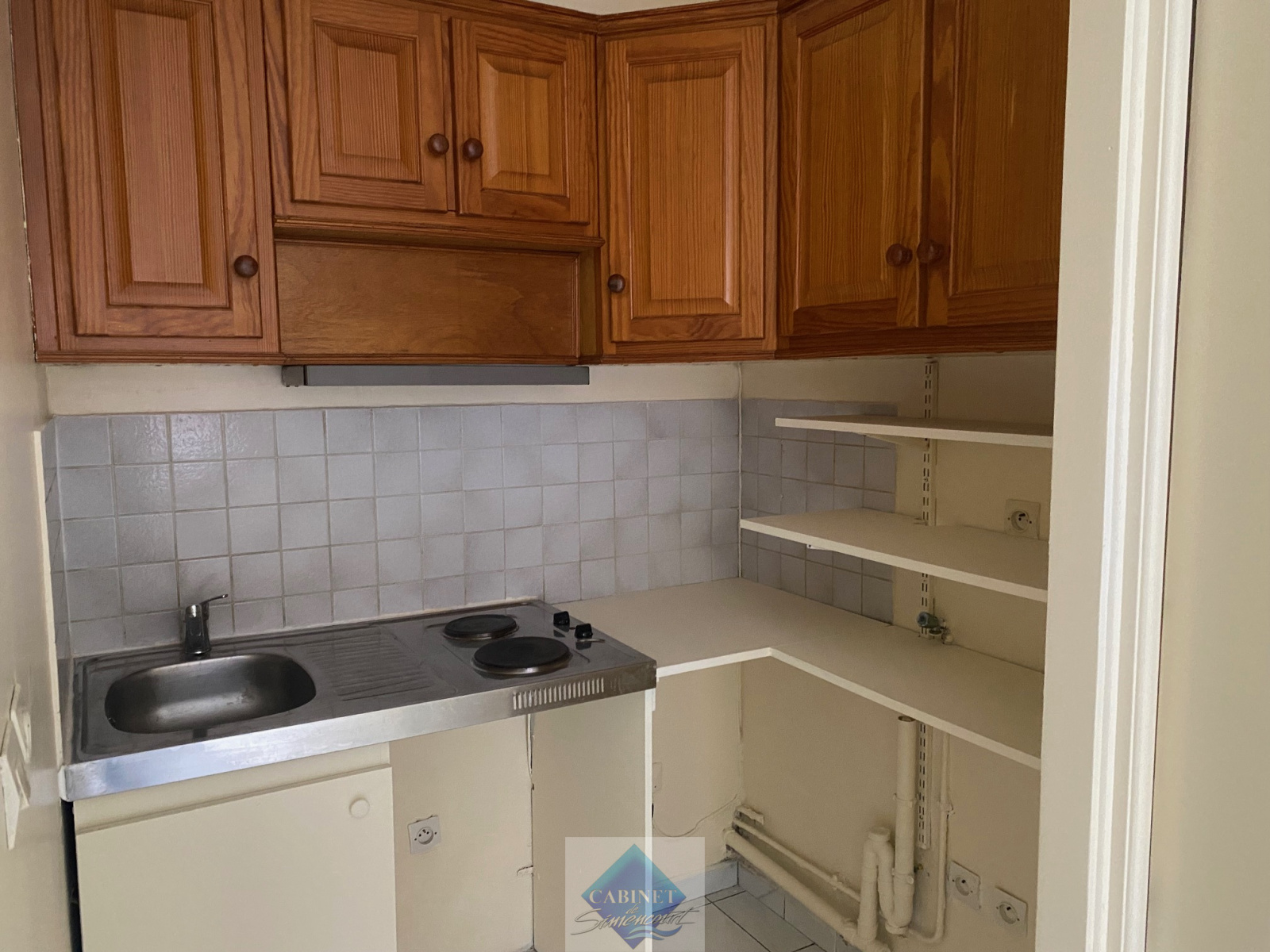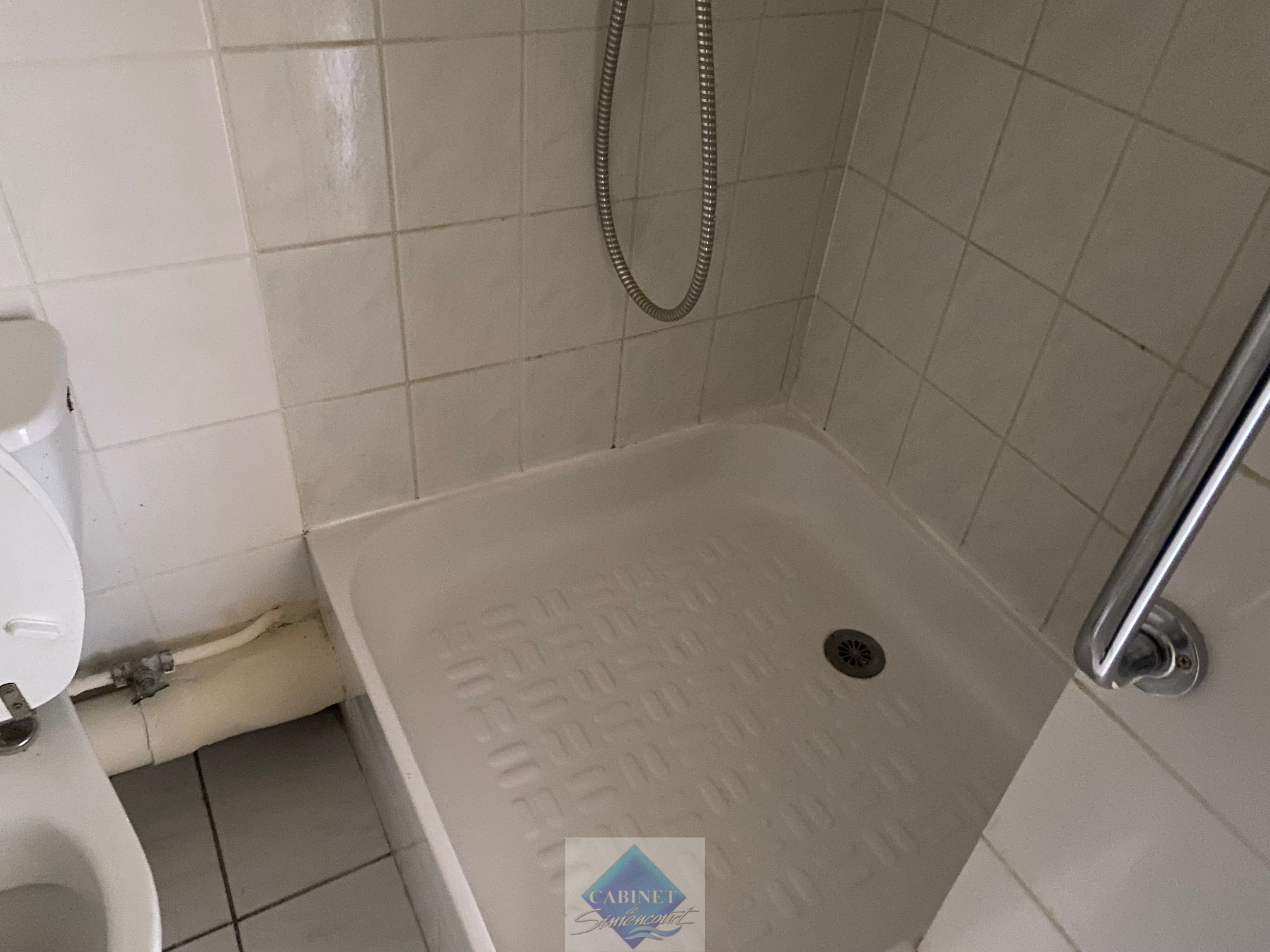 Studio au RDC d'une villa Mersoise comprenant un séjour coin cuisine, une salle de douche avec wc, un espace couchage ou bureau, une courette. Libre de suite. Les frais d'agence sont de 261.36€.