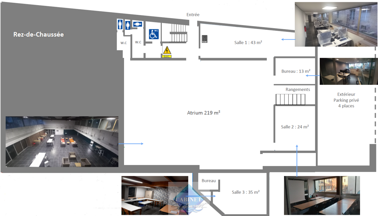 Au coeur du centre ville d'Abbeville local de 520m2 sur RDC et 1er étage mezzanine + salle d'archives en sous sol de 80m² supplémentaires. Composé de 8 bureaux et salles de réunions de 24 à 43m² + atrium central de 220m² venant d'être rénovés. Sanitaires dont PMR. 4/5 places de parkings privatifs extérieurs. Contactez Thomas Cadix: O6.76.6O.17.O5