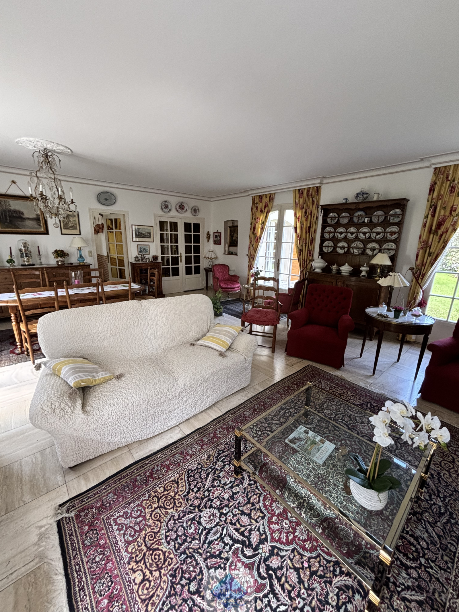 -Une grande entrée desservant plusieurs pièces: une cuisine aménagée et équipée avec coin repas d'une superfie de 19 m² ,un grand séjour de 48 m² avec une cheminée à insert et un accès terrasse,un bureau,une suite parentale de 20m² avec accés salle de bain, un vestiaire avec lavabo avec WC et placard.
