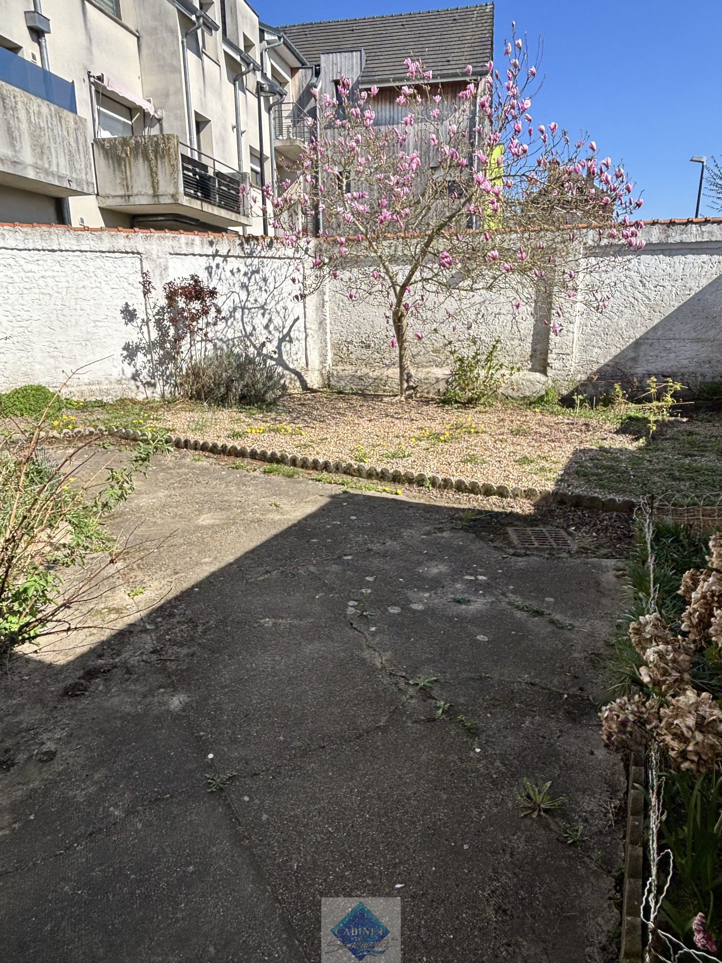 A l'extérieur: une cour d'environ 80 m² avec accés au garage d'environ 40 m².