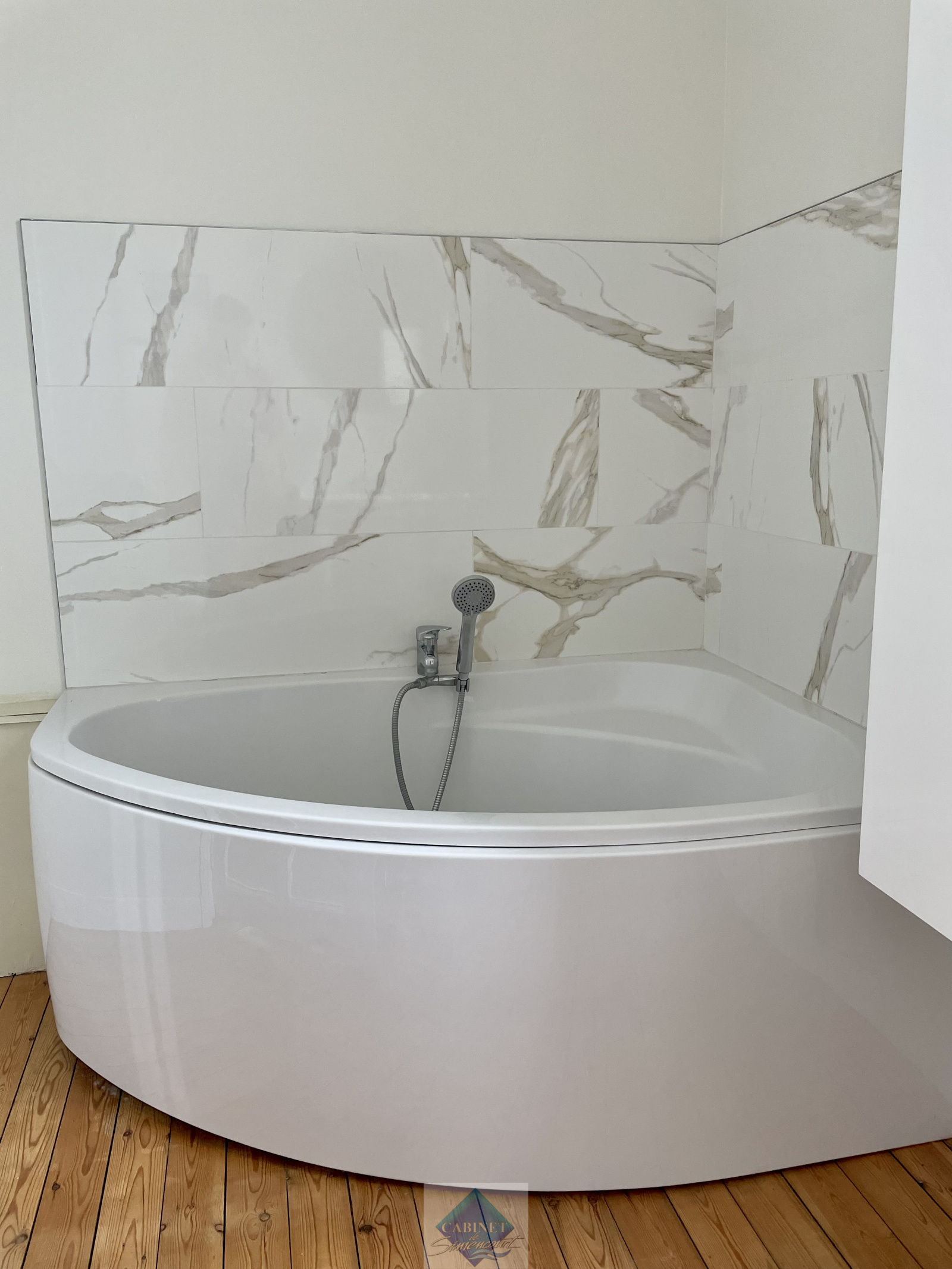 Au 1er étage de la maison, 2 chambres doubles, une salle de bain avec baignoire, vasque et toilettes et un dressing.