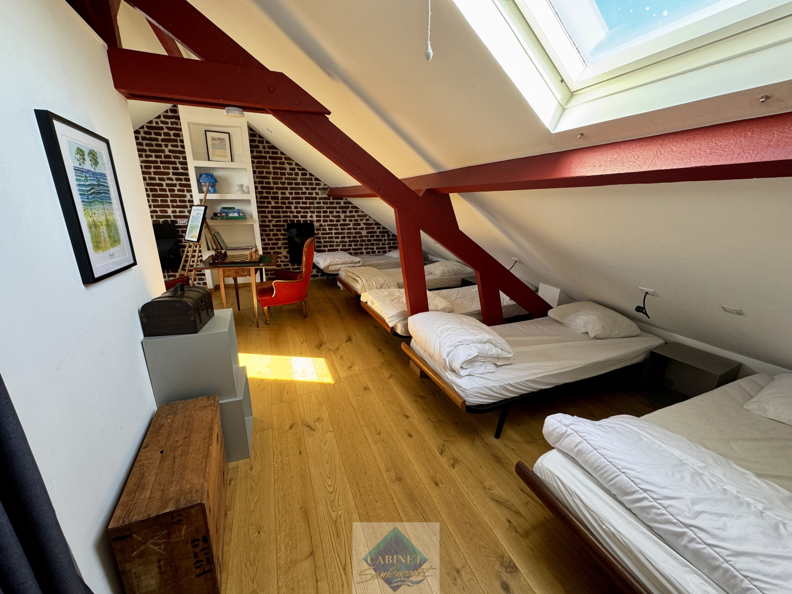 Au dernier étage, un dortoir et une salle d'eau avec douche vasque et toilettes.