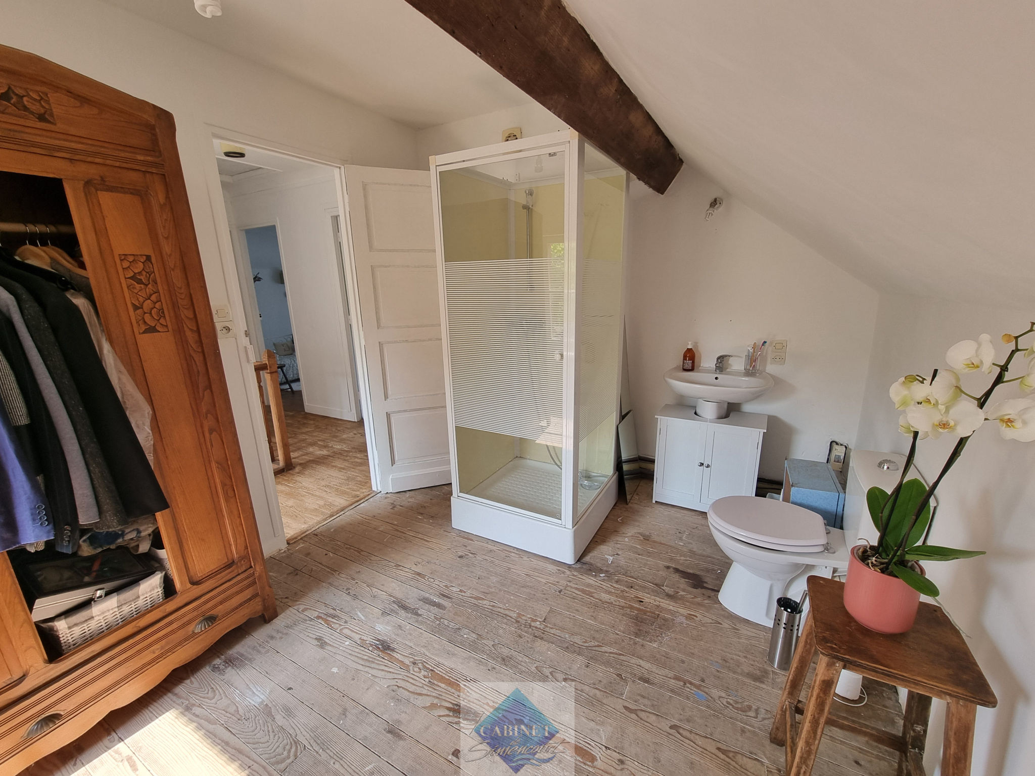 A l'étage, 3 grandes chambres et une seconde salle de bain avec WC.