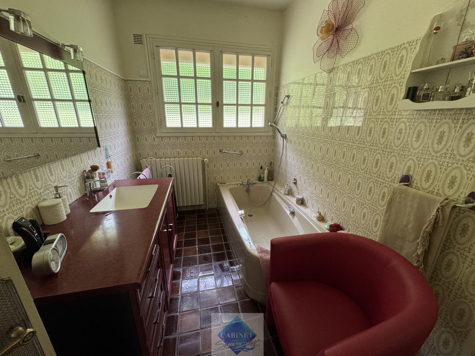 - de 2 salles de bain (1 avec baignoire en rdc et 1 avec douche à l'étage)