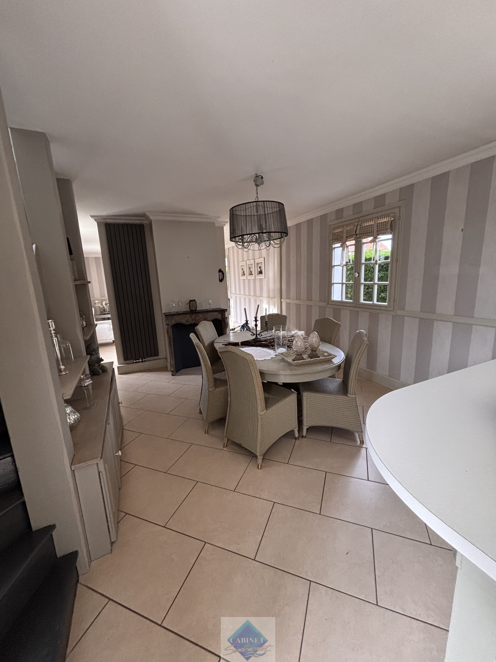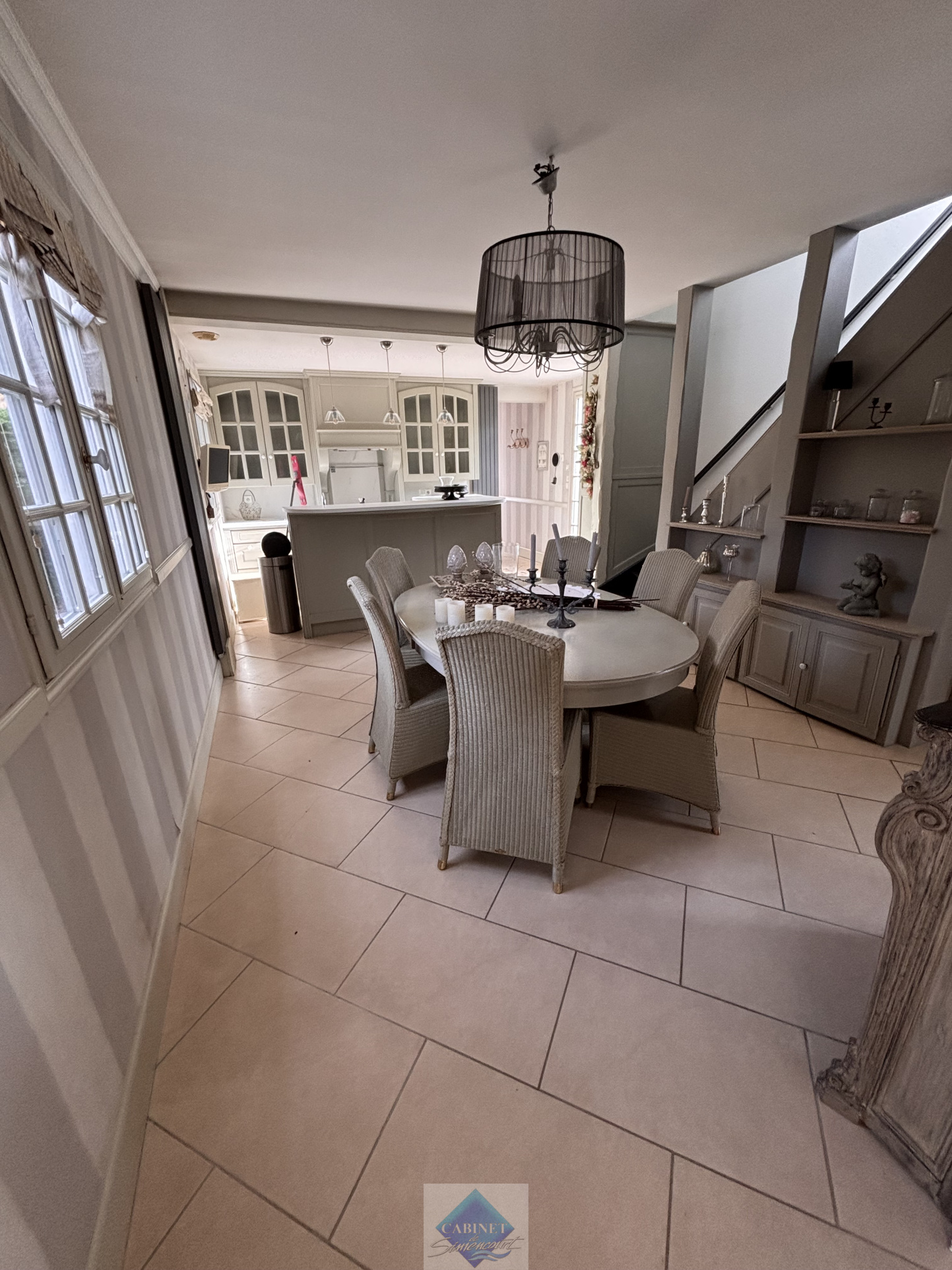 La Cabinet de Simencourt vous propose une maison proche à 15 min de la Baie de Somme comprenant au rez de chaussée, une cuisine aménagée et équipée, une séjour un salon,une salle de bains et un cellier.